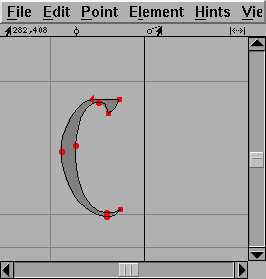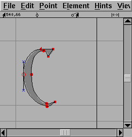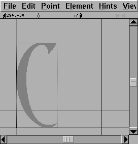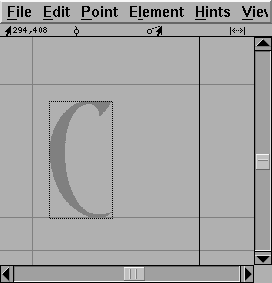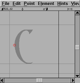 Once you have done that you are ready to start editing glyphs. Double click on the entry for "C" in the font view above. You should now have an empty Outline Glyph window: