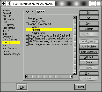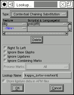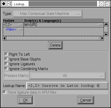 we create a GSUB lookup. This time the lookup type is "Mac Contextual State