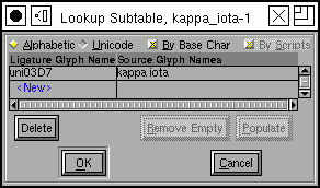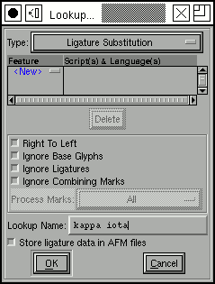 ![]() This rule does have substitutions -- we want to take the two characters and convert them into a ligature. So Press [New] under the sequence