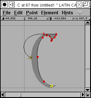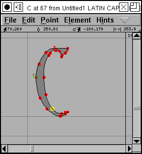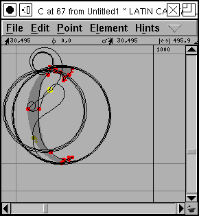 | As we approach the lower tip of the C we again need to zoom in | And eventually we have completed a rough outline of the glyph. Clicking