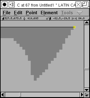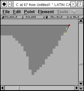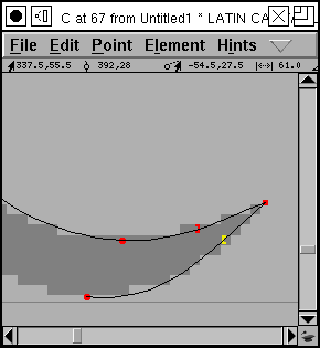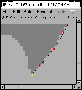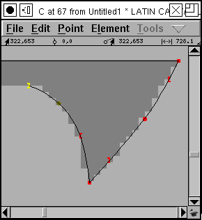 | Then proceeding to fill in the other points needed to make for a smooth curve of the serif. | And another smooth curve of the other side of the serif. | Now it is no longer useful to have such a close view of the image, so