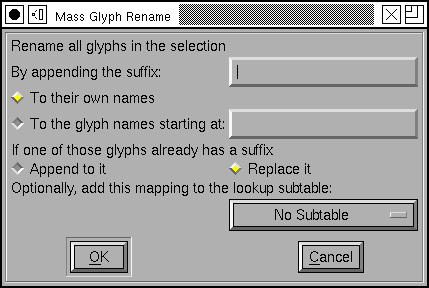you to rename a bunch of selected glyphs. It can be used in two ways, either: