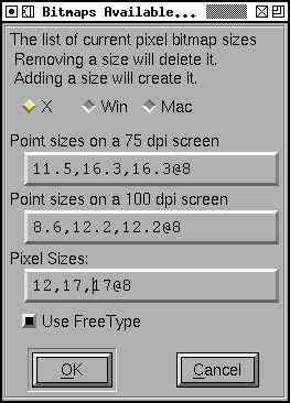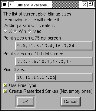 This brings up a list of pixel sizes for bitmap fonts.