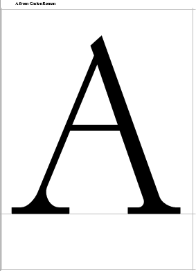 Once you have edited in this window to your satisfaction you may print the result. FontForge will produce either PostScript or PDF output (If your fonts are originally truetype they will be output with a PostScript wrapper around them so PostScript can deal with them).