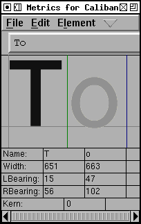 Underneath the display area are a set of text fields. You may type in new numbers for any of these fields to change the corresponding metrics of the glyph.