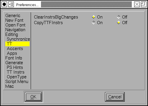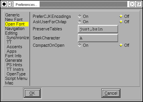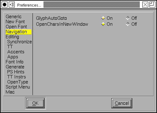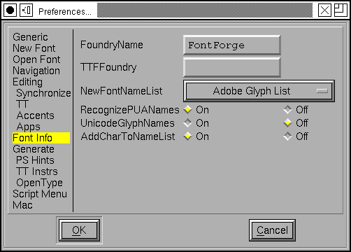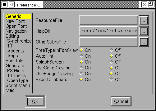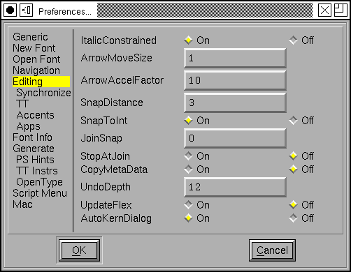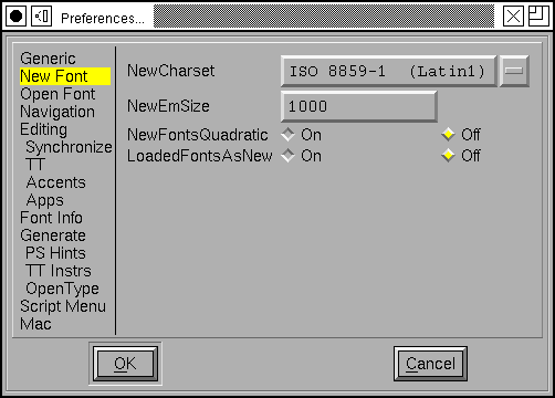 defaults. Any settings you make will be saved back into ~/.FontForge/prefs.