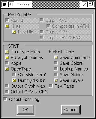 If you leave [] Validate Before Saving checked then FontForge will attempt