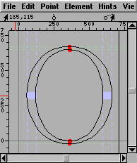 Points with hintmasks attached to them have circles drawn around them.