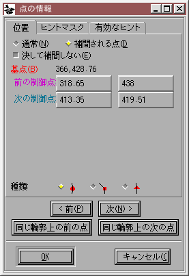 ここでは現在の点に関する情報を表示します。基点(B): は、その点自身の置かれた位置を表します。