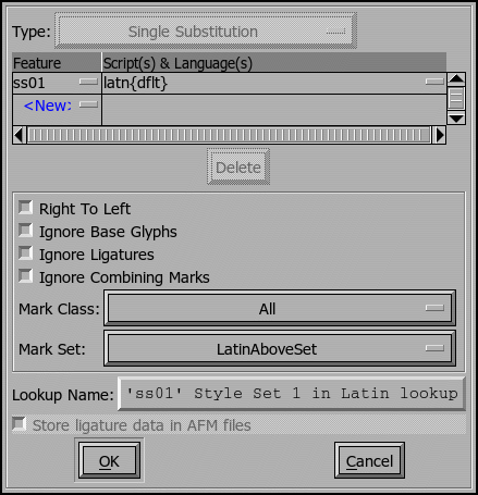 The contextual substitution dialog is quite complicated and is discussed in its own section. These lookups can only live in an OpenType font, not in an Apple Advanced Typography font.